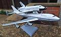 As the Shuttle could not actually achieve powered flight in the atmosphere, it could only glide essentially, NASA decided the best way to move them around after initial construction or upon returning from a mission to Edwards Air Force Base was to piggy back them on a Boeing 747. To this end they bought a used airliner from American Airlines ( and later a 2nd from Japan Airlines ) which were gutted and substantially strengthened by Boeing to accommodate a Shuttle. After commissioning it was noted that a Boeing engineer had stencilled at all 3 mounting pylons " MOUNT SHUTTLE HERE - BLACK SIDE DOWN". Initially the Shuttle was taken up to + 35000 feet on the 747 and released to assess the glide capabilities of the spacecraft. This proved very successful and the the pilots reported no major difficulties flying the combination with the added lift provided by the enormous delta wing on the Shuttle offsetting drag issues. The Shuttle had a rear aerodynamic rocket cover fitted and stabilizer end plates fitted to the tips of the tailplanes. There are rumours that some military equipment which ejected heat sources were fitted to thwart heat seeking missiles - seen a photo of one but beyond my skill set to replicate. This plane is an exhibition in California now and used to pinch parts for the 2nd aircraft which is still airworthy I believe.