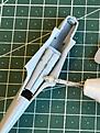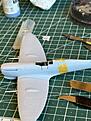 This morning I decided I’d like the cockpit door open , of course I should have done this before gluing the fuselage together !!DOH! But fool that I am I decided to go ahead anyway. The door sides were carefully cut with a combination of razor saw and finishing off with the scalpel and the bottom was done with a scriber and finished with the scalpel again . Once it was cleaned up it looked fine except that the cockpit walls looked a little thick and the door sat too proud once offered up. A bit of smoke and mirrors was needed , the cockpit walls were chamfered to make the visible edge look thinner and a scoop was taken out under where the door will sit so it will look thinner too . Various bits have now had a bit of Mr surfacer applied and this is now curing .👍 4Comment