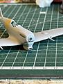After cutting and sanding to size a suitable piece of sprue this was glued in and spread the fuselage enough to give a nice tight joint. The underside of the fuselage wing fillet was also ground down slightly to ensure the joint was flush with the wing top. The tropical filter nose section was next to go on - its best to glue the very back piece of this first , let it set then glue up the front to get a better joint so the front will be glued tomorrow.