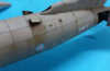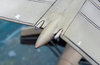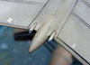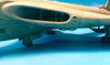Sanded off the liitle mound that was the molded tail wheel and replaced with a 1/144 scale F-16 main wheel. I first dug a trench, then cut the wheel in half and plugged it in after painting it.
