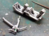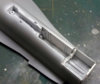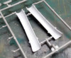 Undercarriage being sprayed with Tamiya white halfway ran out of paint ... the filled ejector pin marks not visible under the paint on the rear landing gear.