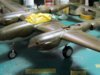 After the water color light tan wash I applied a coat of varnish for protection. This darkened the colors. Here you can see that the blu-tac has done its job of a semi hard line between the grey and olive drab. Also you will see the difference of the front landing gear of the Lightnings. The oleo arm on this is in the forward position while the other is behind.
