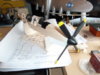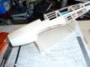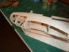 First plank goes into place resting on the keel member,the planks go all around the nose and will eventually be sanded to blend everything in.