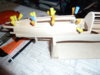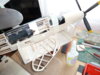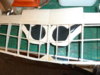 Lay some white paint onto a piece of card,dab a straw into the paint and gently touch the instrument panel marking the bezels,no need to be perfect just suggest the instruments,once the glazing is in place it will take the bare wood effect away from the cockpit area,it is not going to weigh anything and is done purely for effect.