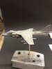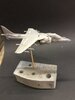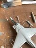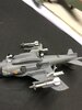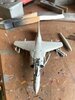 Time for paint on this one now . I started with the underside grey ( in this case fs36320 dark ghost grey) then when cured i masked up the underside and applied the top colour ( fs 36231 dark gull grey) . The masking was very tricky as not only is it so small but the three pylons on each wing made it more difficult . Anyways its done and ive taken off the masking and it worked very well . The distinction between the two greys is almost imperceptible at a distance but it is on the real thing as well. Ive just got the nose cone to do now then its on to the undercarriage and missiles.Comment