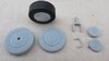 Main and tail wheel parts. One wheel completed but not weathered. All parts have a lot of surface smoothing to do being 3D printed. The tail wheel was one part but separated coming off it's sheet. the lower part was at the bottom, and I do like the detail printed, so i may keep that