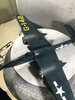 Decals now on and its had a good wet coat of aqua gloss. A bonus with the aftermarket Hellcat decals is 2 lots of markings for the props were included and they were a lot better and more comprehensive than the poor kit offerings. The canopy problem has been sorted by using the old , damaged canopy as a former and gently heating and bending some clear acetate ( shampoo bottle!) over it . After a couple of goes I got one i was happy with so it then got some aluminium tape applied for the frames. The exhausts have been painted and the engines have now been fully assembled, ready to go on at the last minute
