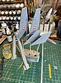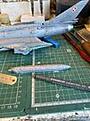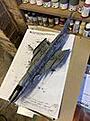 Well after recovering from a bad case of Stencilitis , im now moving on a bit quicker with this one :smiling5:. The whole airframe and associated bits ( wings, elevators , stores etc.) have been coated with Klear to seal all the billions of decals in . A final satin coat is to be applied later. Several very vulnerable bits that would definitely have got knocked off if I had fitted them earlier in the build have now been added , namely the two nose probes and the ventral fin , the probes are yet to be painted.