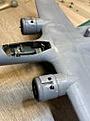 The pit was easy to mask off. I fixed the canopies temporarily with Micro Liquid Tape which, when the painting is done, enables them to be easily removed for the fitting of the guns.