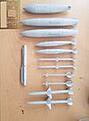 Last quick update before I go on holiday. I made a start on putting together the bombs, missiles and fuel tanks. There’s also a jamming pod with some bits missing as it’s easier to paint that way. I really dislike putting cylinders together, there never seems to be enough guide pins to help with lining the two halves up. I’ve done the best I can with them but most still need cleaning up.