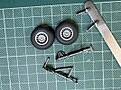 Dark aluminium sprayed on u/c areas. I will mask up and spray the tyres soon. There is a little detail painting on the legs and these parts will need washes.