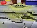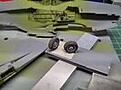The fuselage is now in filler mode along the joint line. Wings have been tried for fit and fit like a glove (great!). The drop tanks are now in primer so are the undercarriage legs who have also had some etch added as well as fine wire for the hydraulic line. The drop tanks have had some detail changes and new filler caps and fuel lines added although not shown in the pics.