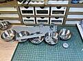 I have been working on the mid-upper and ball turret assemblies and the components are painted. These will need weathering before assembly. The tail wheel has also been painted.