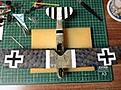 After decal-gate, I drove on and did (I hope) the last of the decals. There are little signs on the lower end of the wing struts, facing outwards. I laid out the struts in their order and put them on. Then brain fart #529 took over,
