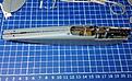 The white needle on the left that goes into the gray nozzle and looks like the tan piece on the right when inserted. Never had a prob before, so I guess today was my (un)lucky day. Grabbed the flashlight and went about looking for it on my hands and knees. I have tan marbled linoleum in the kitchen and similar colored wood flooring in the living room. Looked everywhere, for an hour, and it was nowhere to be found!!! I then broke out my other 0.4 white needle, from an ancient single action and shot the gloss on. The whole time, with the damn music from the Twilight Zone playing in my head!!! In the end, we had this,