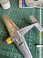The wings have been glued together and fitted to the fuselage along with the tailplanes , so its looking like an aircraft now. The canopy has been masked up ( my absolute favourite job :rolling and glued on , taped down until its cured . I think I’m going to go for option 1 on the schemes , the all over orange JASDF machine .Click image for larger version