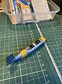 Got the interior done and fuselage together. I used painted strips of tape for the belts and just painted everything else. I painted some shapes on the fuselage sides , these will give the impression of detail under the closed canopy . I added two control columns from fuse wire as strangely the kit didnt supply any. Ive also started assembling the tractor , adding some plastic card bits to the wheelarches to prevent seeing all the way through . Click image for larger version