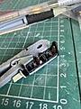 After fitting the periscope to the inside and outside of the canopy its now been glued on - not a seamless fit but this is to be expected with limited run kits. Another unfortunate aspect of some limited run toolings is the lack of any locating pins or in this case slots and tabs for the wings , its just a plain butt joint. In order to strengthen it i drilled some holes to fit brass pins into. They were glued into the wings first then a blob of black paint was put on the end of the pins and used to mark roughly where to drill on the fuselage. The holes needed a bit of fettling to get a flush fit but theyre now glued on and dont look too bad . Click image for larger version