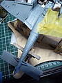 The masking mojo made a brief visit today, so I got the canopy masked - sorry, lost the photo - and splashed some Vallejo RLM65 on the underside:Click image for larger version