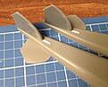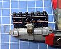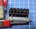 I'll give the springs a wash of alu for definition. I'm not too sure using 0.2 lead wire was a good idea for the spark plug cables. it is so soft and will be a beach to bend properly. If it doesn't work, I will make new rails and use brass wire instead. Afterwards, I finished painting the top on the motor in AK satin black...Moving on, I plugged the rear wing openings on the fusi,