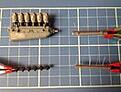 You have these and I have cleaned them up a bit. I now had to think about what to use for the (fake) hinges. While thinking, I grabbed the exhaust pipe piece to start cleaning it up,