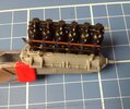 Sorry for the blurry pic, but I got the the 12 pieces of 9 mm long lead wire CA'd to each nub on them. Then comes the fun trying to form them and get them glued to the rail end on each side These will be painted blue too, and then the magnetos are attached to the tower with the wooden handle on the back of the motor (still to be glued on). A little magneto paint detailing and the motor should be finished...........How much will be seen once it's in the plane??? No idea, but it's there!!!...