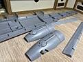I have made a start on the wings, constructing the wheel wells. Before gluing them into the lower wings I sprayed them with the new airbrush, plus the wheel well edges on the wing itself.