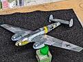 Not much to show since yesterday. It's had a "sludge" wash all over it and I've been targeting some areas with panel liner too. I've also started brushing in some of the details and got some colour on the bombs. The instructions called out for Mr Color #55 Khaki but it seemed too vibrant, so I toned it down with an enamel wash.