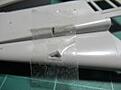 AN first thing i wanted to do was fit in the navlights glazein as after the first muck up where i nearly lost the tail glazein this time i had a thunk about how i would hold it to postion it as its so small well came up with this idea of stickin the glazein to a bit of sellotape so i dont lose it an the put a lttle glue in the hole an then holding the tape with the glazein stuck to it i just lifted it over the hole an postioned it an pressed it home so success Click image for larger version