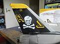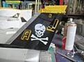 AN HERE the J went to bits so a bit of again yellow paint touchin up but at least the skull an crossbone stayed whole an i must admit i was sweatin buckects tryin to fit this big decall on an the tiny no '1 at the tail top again just fell apart so more yellow paint oh dear
