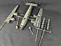 After masking there was some grey overspray from doing the underside, so first I sprayed everything with a very dark green, to cover the grey and act as a shadow coat.