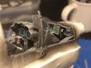 There were a few additions made to the panels before I reprimed and blacked everything during the week and then detail painted this morning. Dry brushed with dark grey, painted on buttons & switches with a 4/0 brush and belts from masking tape which were painted dark grey and drybrushed light grey. Usefully most references showed the belts slung as modelled, meaning I didn't have to worry about buckles!