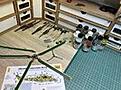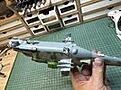 Here are the subs painted, you can see some touching up is needed and during the process of masking a rotor blade broke off. It should not be a problem to repair it once painting is done. You can see some of the paints used in the picture.