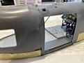 Started on the sea tray, I had the basic shape all cut out but it was the short side walls that bothered me. Out plastic card, (0.3mm), and sliced a few strips to a suitable length to form the sides. The small spigot top right of the tray is to mark the hole the rear three man seat locates into.