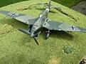 Paints are Mr Hobby Aqueous, finished with Galeria Matt. I didn't do much weathering, just a black wash on the radiator and a bit of pigment around the exhausets and the cannons, but it doesn't show up on the photos. I used masks for the camo, from TopNotch, picked up at the Milton Keynes show. Not sure I'd bother again for splinter camo. Used tape for the canopy, which was... interesting.