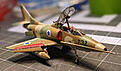 It has resin seats (not sure where they came from) with custom ejection handles out of wire. I originally was going to do this as a fancy 1976 paint job, but decided I wanted a bit more color and chose the IAF option instead. Once I went down that road, I realized that IAF A-4's have an extension to the tailpipe, which doesn't come with the kit. So I turned some plastic tubing to the correct inner/outer diameters on my mini lathe and it came out really nice. I added a Sidewinder and an ECM pod to the bottom as I've seen them fly with a similar loadout.