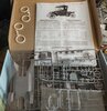 The original issue of this model had a 'brass' sprue for the radiator & lights, but ICM found that the plating wasn't very good - so now it's just a normal grey sprue. Not sure about the off-white vinyl tyres, I'll have to see how they look. I thought all Model T cars came in any colour, as long it was black ! - I'll have to have a bit of a dig around..............