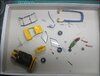 Talking of the front suspension, I discovered that somebody had done a repair job on it using some of the black parts shown in the third picture of my first post. Here is a picture of a Bond Bug sprue showing the three parts that are missing. The tin gives a good idea of the sizes of these pieces that should be easy to make: