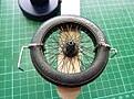 The cut off parts were to attach to the body. I added small pads to the body attachment points and lengthened the bars with brass tube. The advantage of the brass tubes was that I could now slide the wheel nearer or further from the body.