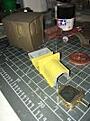 Attempt one of making the radiator look realistic has, so far, the 'gold' sprayed on and some black brushed into the grille - I now need to work out how to highlight the grid part with silver...