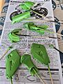 It's nice still weather today so I got the green bits done. The spray paints are far too toxic to use in the house. I've used the mica green from zero paints. It works well straight out of the bottle so there's no need to faff around with thinners.