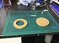 also i made this jig 2 round 6mm hardboard circles (just easier to cut) now i plan to bond one on to the other and this should hold the wheel parts in place while i re spoke them thats the plan anyway idea is it will keep it square while the glue sets