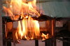 Back of building well alight, I used a pipet to put some meths on the front of the floor and in the roof.