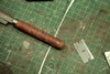 Well I've been busy today doing the roof cover. Did the copper sheet in kitchen foil did have enough pewter, which would have been better. Spray glued the foil to the roof , having done the barge boards first . This out of the way a section of round dowel was glued to the apex of the roof. This gave the shape . On this I put some pewter cut into 27 mm lengths and then folded at one end to give a 3 mm lip .