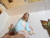 Sue - If you feel up to re-painting the figures, I'd recommend Vallejo Model Colour paints, available rom Scale Model Shop. I'd have fun and go for some deeper, more intense colours. In paintings the Virgin is always depicted with a dark blue mantle: