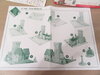 Hi Jim. I think I will be a while before I finish this tower. I am not sure what the bricks or tiles are made of as it does not say on the box or instructions either, but if I hit them with a hammer they break into tiny pieces. The base is wood with cardboard base over top. The buildings are cardboard with bricks on the side. There is a tiny bag of plaster in the kit. I will post pictures as I build it.
