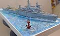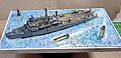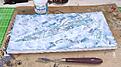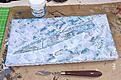 I then painted the sea colours (light blue, medium blue, dark blue, white, black and green).