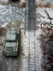 Russian forces are pushing back the invader. Tanks have reached a river and found an intact rail bridge. Rather than risk damaging the perhaps weakened structure, the lead tank has managed to ford the river.