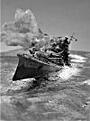 The British open fire first and the overwhelming fire power quickly puts Bismarck's main armament out of action. An early hit just below the bridge kills Admiral Lutjens, the ship's Captain and all senior officers.