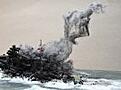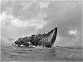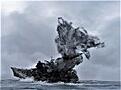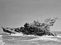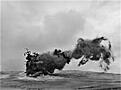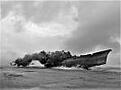 Her Battle Ensign still flies. Stubborn bravery or perhaps her surviving crew couldn't haul it down to put a stop to the slaughter. Who knows?